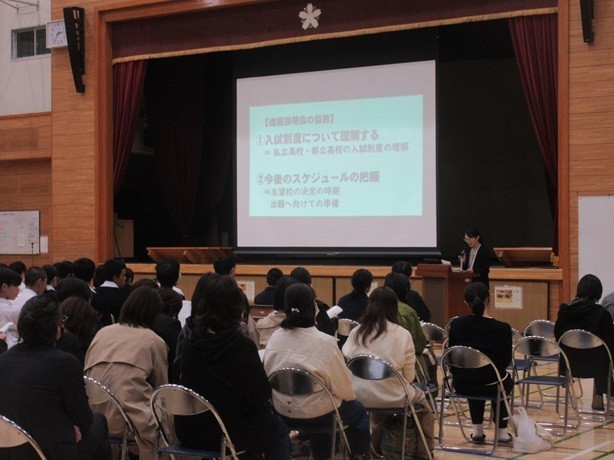9年生と保護者を対象に進路説明会を行いました。平日開催となりましたが、多くの保護者の皆様にお越しいただきました。ありがとうございます。今後進路面談等もありますが、何かわからないことなどありましたら学年の方までいつでもお問い合わせください。どうぞよろしくお願いいたします。