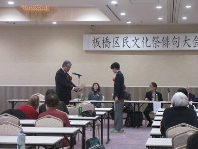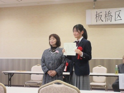 板橋区立文化会館で、俳句大会に応募して受賞した生徒の授賞式がありました。「区長賞・教育長賞・俳句連盟会長賞・努力賞・連盟賞など9名が選ばれ3名の生徒が授賞式に招待されました。桜川中の生徒の皆さんの姿がとても立派に見えました。これからも様々なことに挑戦の日々を送りましょう!