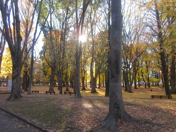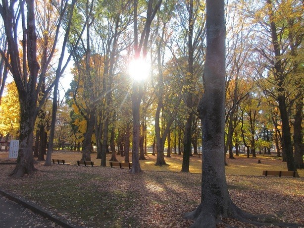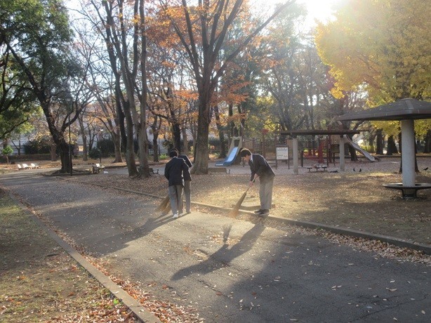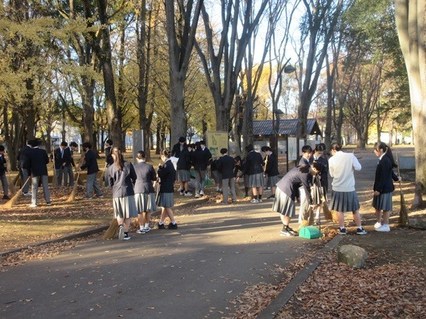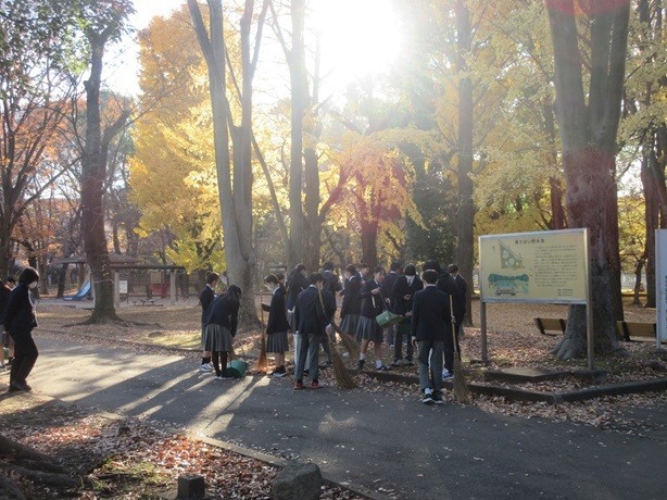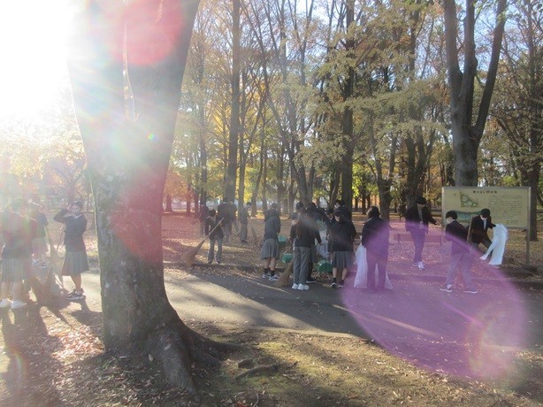 8年生が落ち葉掃きを手伝ってくれました。朝日の中、爽やかな空気、紅葉と落ち葉掃きの素敵な時間だと思いました。