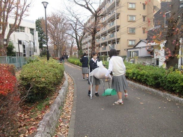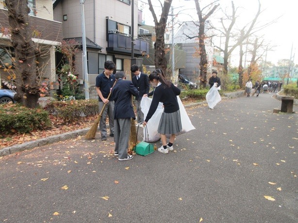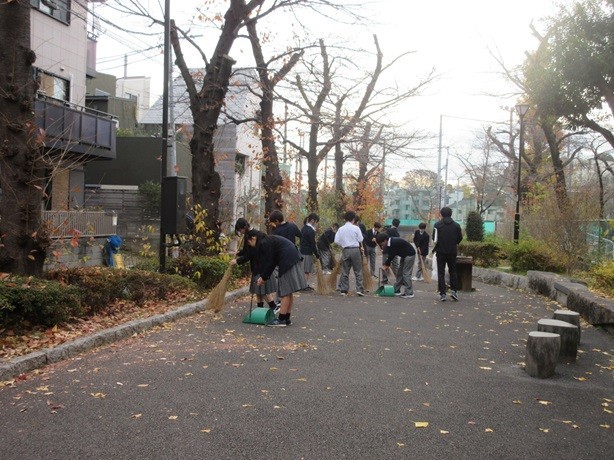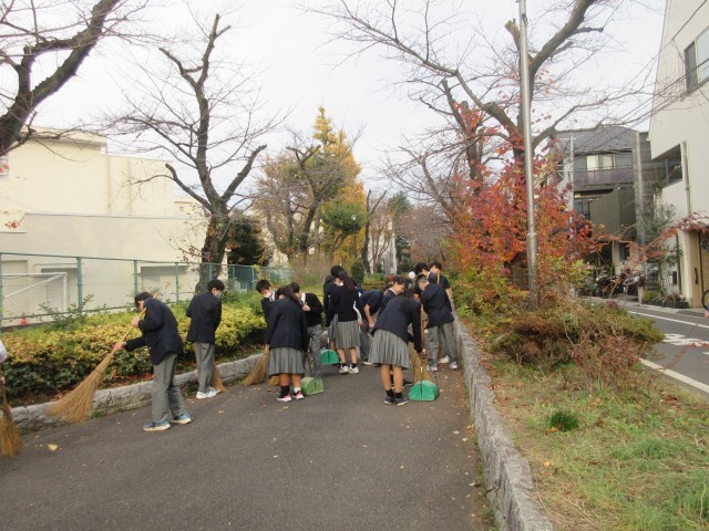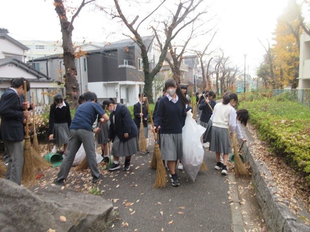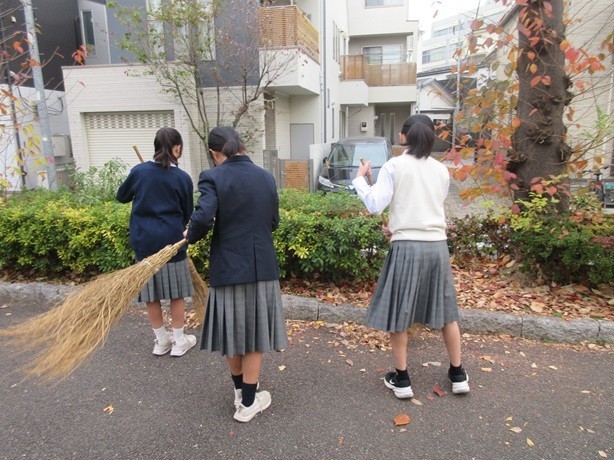 7年生の落ち葉掃きの様子です。