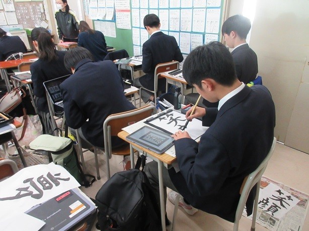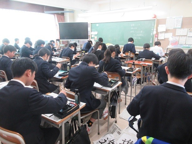 9年生の国語授業(書写)の様子です。