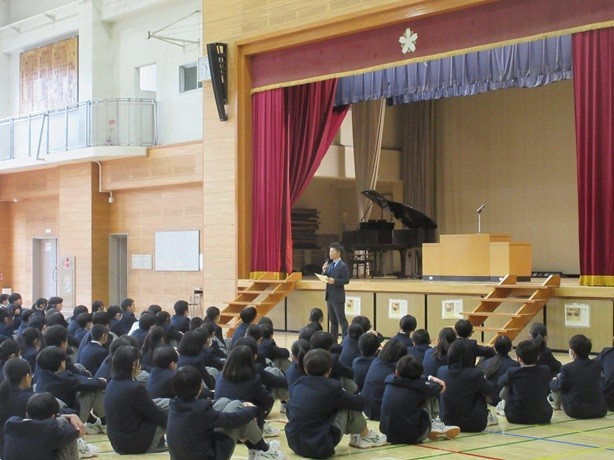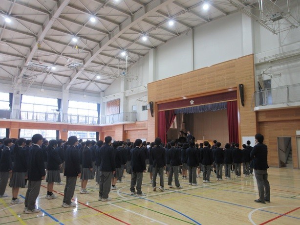 終業式を行いました。あっという間の2学期だったように感じます。生徒の皆さんは忙しい中にも主体的に取り組む姿がとてもたくましく感じました。9年生はいよいよ1月から推薦入試等が始まります。自分の目標に向かって全力で走り抜けてください。8年生はスキー教室へ、7年生は職場体験へ向けて準備をしています。頑張りましょう!