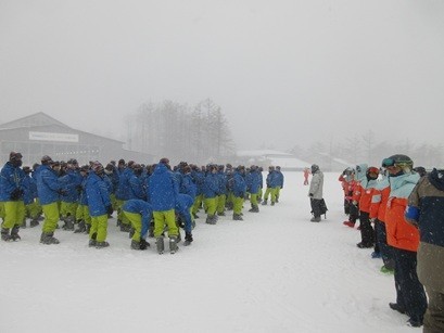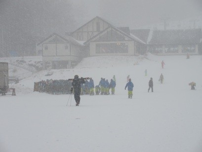 渋滞はありましたが、予定より1時間近く早く到着しました。予定より早く昼食をとりました。ホテルの方から寒波の影響等はあまりないとのお話でした。天気も良く今のところ順調です。食事後準備をしてゲレンデへと向かいました。・・・突然の吹雪になりましたが、その後また晴れました。時折吹雪くときはありましたが実習ができる範囲でした。何とか無事に1日目のスキー実習を終わりました。