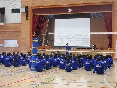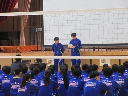 昨夜からの強風が残っていますが、晴天の本日9年生がスポーツ大会を行いました。開会式を行い選手宣誓や競技上の注意(ビデオ作成)など工夫をして行っていました。9年生は真面目な中にも「笑い」を入れることにも手を抜きません!選手宣誓でも「劇」を入れ、ビデオの中にも楽しさいっぱいでした。午前中の長い時間ですがけが、怪我がないよう、笑顔で終われるようにしましょうとも話していました。