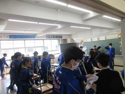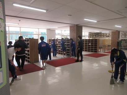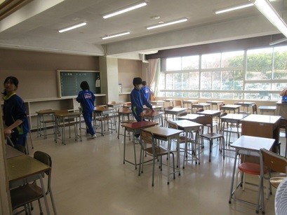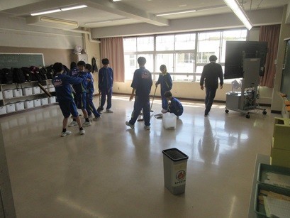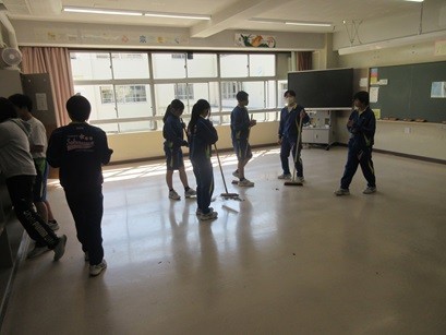 9学年はいませんので、7年生と8年生が大掃除をしました。みな一生懸命に取り組んでいました。今まで使った教室にも感謝の気持ちで掃除をしてくれたのではないでしょうか。ありがとうございました。