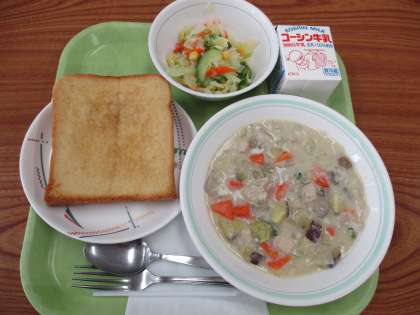 ○牛乳 ○メープルトースト ○フレンチサラダ ○さつまいものシチュー