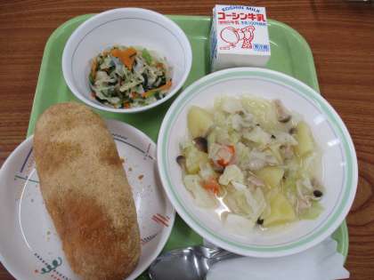 ○牛乳 ○きな粉揚げパン ○さっぱりポトフ ○みそドレサラダ