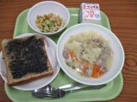 ○牛乳 ○中華風炊き込みごはん ○ばんさんすう ○白菜のクリームスープ