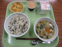 今日は『十五夜献立』です。秋の十五夜は「中秋(ちゅうしゅう)の名月」と呼ばれ、特に美しい月がみられます。給食では、月にみたてた黄色のお月見団子を作りました。今日の夜は晴れるそうなので、ぜひ月を眺めてみましょう!