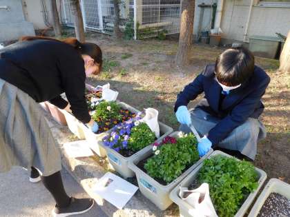 放課後に花いっぱい活動を行いました。