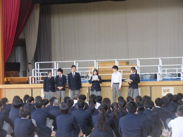 人権作文の発表をしてくれた2名の作文はとても立派で心に響く内容でした。8年生の心の成長の深さに感動しました。