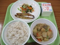 ○牛乳○ごはん○小魚のパン粉焼き○青菜ともやしのごま醤油○豚肉とじゃがいもの味噌...