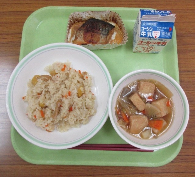 11月2日は十三夜です。旧暦の9月13日の夜に見える月のことを「後の月」といい、今年は明後日がその日に当たります。旧暦では、月が新月になる日を「1日」としており、十三夜は、満月の2日前の月なので、少し欠けています。十五夜に次いで月が美しいとされ、月を眺めながら秋の収穫を感謝します。この時期に収穫される豆や栗などをお供えすることから、「豆名月」や「栗名月」とも呼ばれます。給食では栗ごはんを作りました。