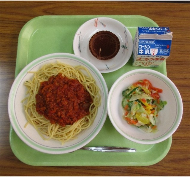 今日はイタリアの料理をイメージして給食を作りました。気候や土地の特徴を生かした独自の食文化や伝統料理があります。山に近い地域では小麦や米の栽培と酪農が盛んで、ラザニアやリゾットなどの料理が有名です。地中海に面した南部では、トマトやオリーブオイル、魚介類をよく使うことが特徴で、ピザやスパゲティなどが代表的です。また、デザートのティラミスもイタリア発祥の食べ物と言われています。給食では作りやすいようにアレンジをして、クリームチーズを使ったクリームをタルトカップに流し込んで作りました。