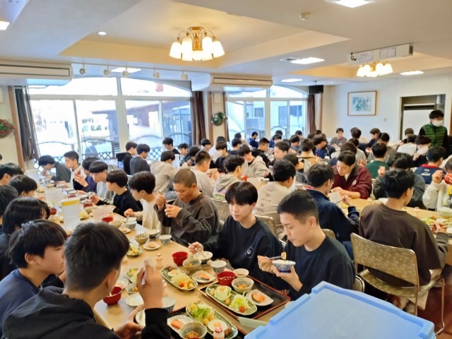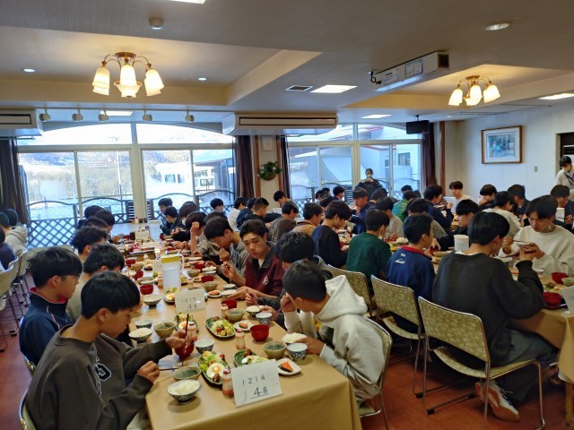 今朝の朝食の様子です。たくさん食べて今日も元気に滑ろう!