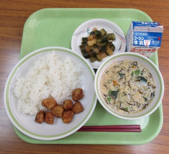 2月17日 給食 公開日 2026/02/17 更新日 2026/02/17 給食献立 今日のかきたま汁にはめかぶが入っています。めかぶは、わかめの根本の「胞子(ほうし)葉(よう)」という部分です。日本では、三陸海岸(岩手県や宮城県の沿岸)でとれるものが多く流通しており、今ぐらいの時期から4月頃が収穫のシーズンです。めかぶには、「食物繊維」が多く含まれています。