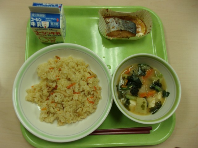 【献立】たけのこごはん さわらの照り焼き 新たまねぎの味噌汁 牛乳