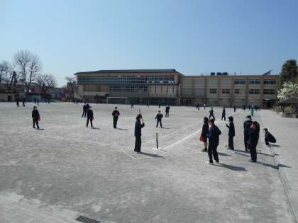 本日、7年生体育では、スポーツ大会を実施しました。種目は男女別に分かれてソフトボールを行いました。全員が関わることができるよう、工夫しながら競技する姿が印象的でした。