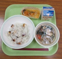 きな粉揚げパンは、リクエスト給食です。揚げパンが誕生したのは東京都大田区の小学校です。当時、欠席している子が多くパンがたくさん残ってしまったそうです。そこで当時の調理員さんが残ってしまったパンを揚げて、砂糖をまぶしたことが揚げパンの始まりと言われています。