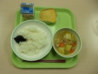 【献立】 ごはん のりの佃煮 卯の花入り卵焼き 塩肉じゃが 牛乳 今日(きょう)...