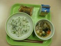 【献立】 ごはん あじのピリ辛ソース わかめともやしの卵スープ パイン缶 牛乳 ...