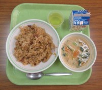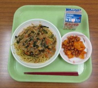給食のラーメンのスープは鶏ガラ、具として入っている野菜の芯や皮を朝から3時間半以上煮込んで作りました。具には、にんにく、しょうが、長ねぎ、玉ねぎ、にんじん、キャベ...