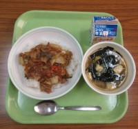 ドライカレーには鉄を含む「レンズ豆」、サラダには「小松菜」を使いました。給食ではいろいろな種類のカレーが登場しますが、赤一中のドライカレーは水分を加えずに作ります...