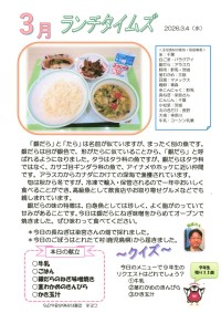 生徒作成献立【明けました2026!午(うま)~い給食新年がんばろうメニュー】「良い夢見られる?!マーボーなす丼」なす17kg使用しています。「おめでたい!紅白しるこ」紅白の白玉だんごをカップに入れて、...