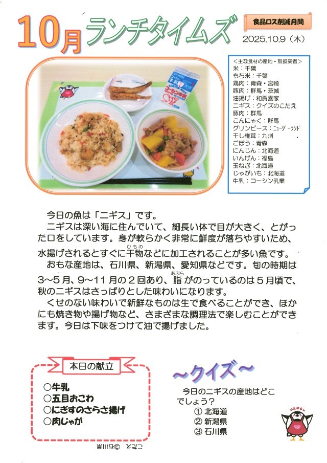 10月9日(木)給食