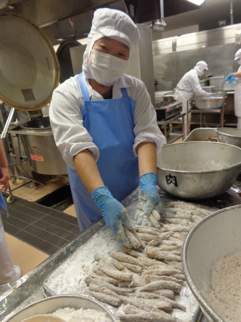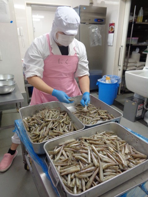「にぎすのさらさ揚げ」一尾一尾確認しながら数えます。一人2尾×670人分。