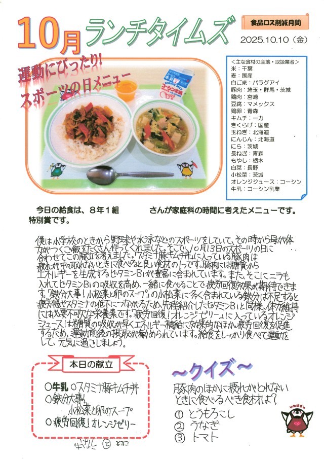 生徒作成献立「運動にぴったり!スポーツの日メニュー」