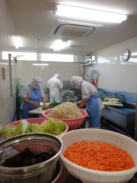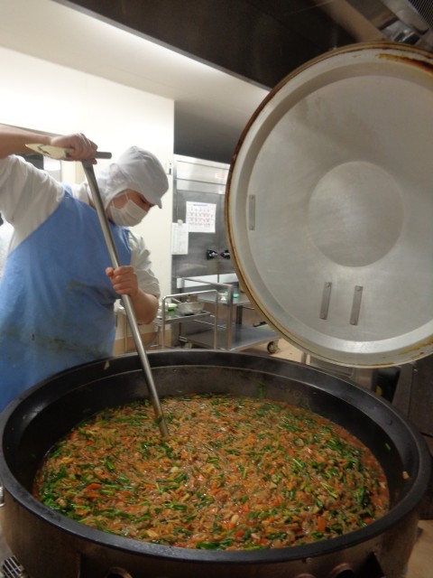 野菜たっぷりのスタミナ豚キムチ丼と小松菜と卵のスープです。