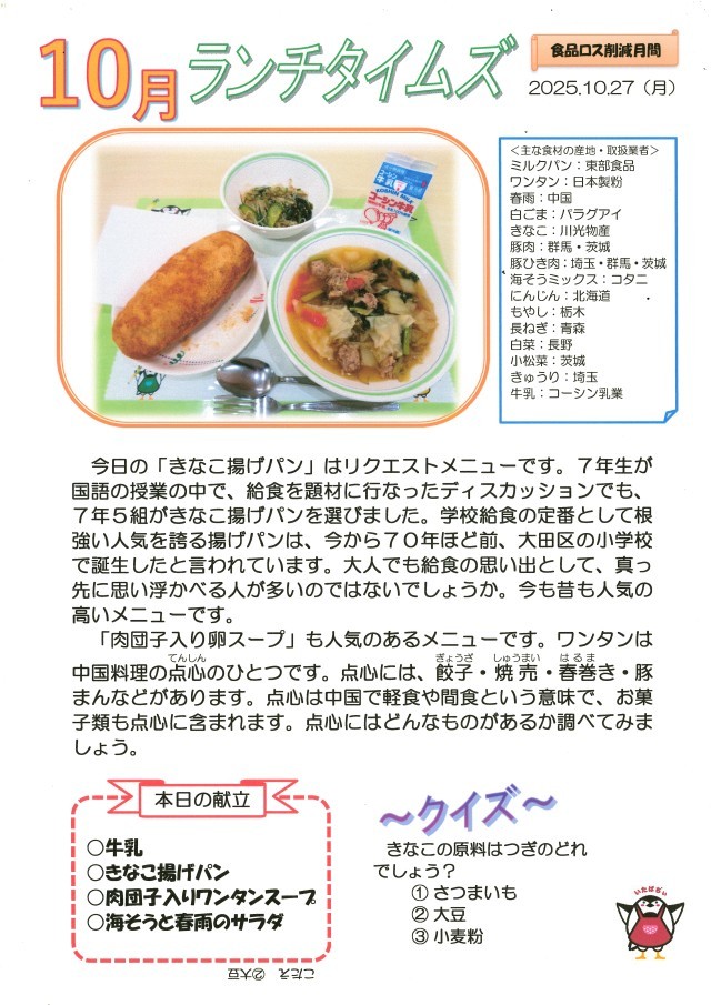 10月27日(月)給食