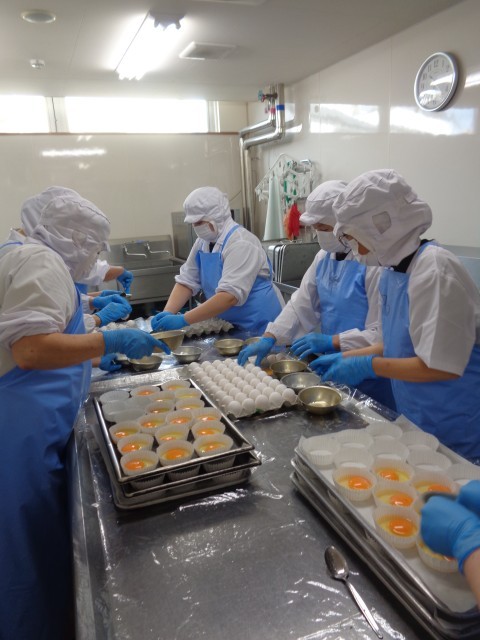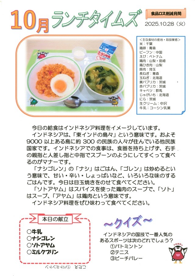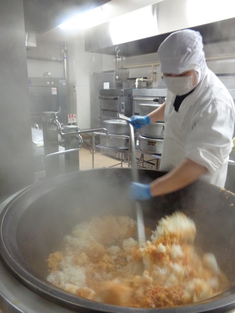 ナシゴレン・・・卵を一つ一つカップに入れてオーブンで焼きます。具を作り、ごはんに混ぜます。食べるときにセルフで目玉焼きをのせます。