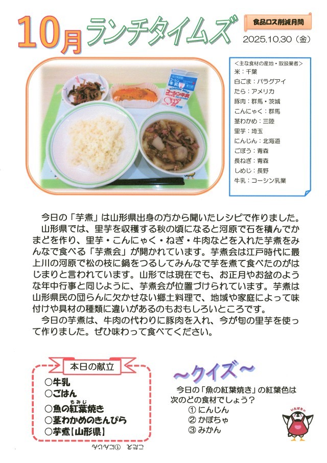 10月30日(木)給食