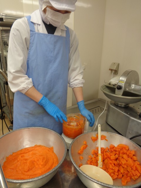魚の紅葉焼き・・・にんじんをすりおろして、マヨネーズと味噌を合わせ、紅葉色のソースを作ります。