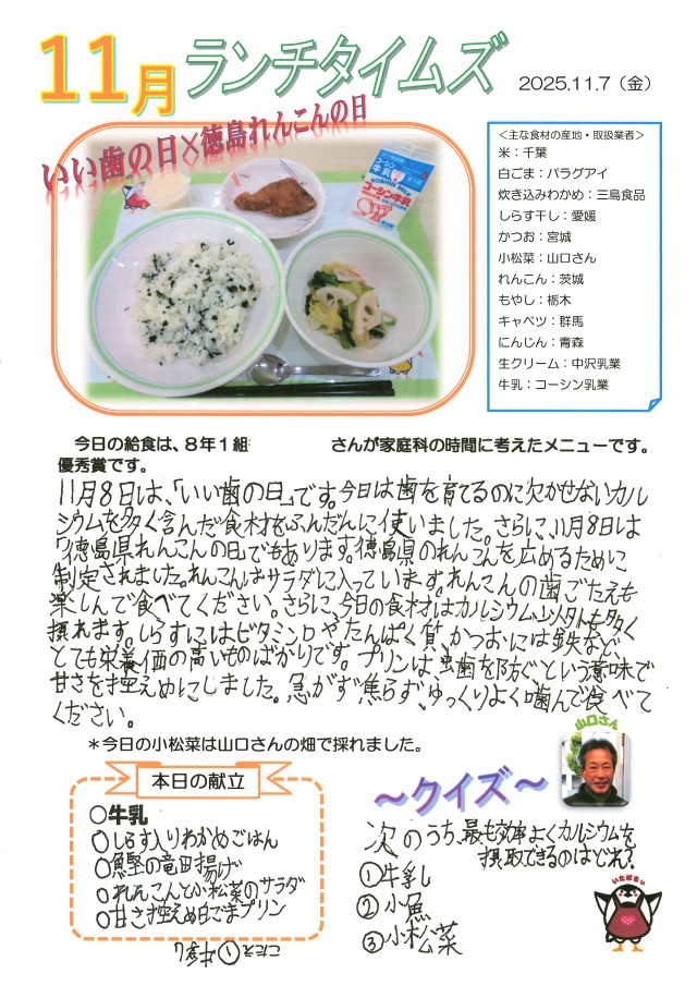 生徒作成献立「いい歯の日×徳島れんこんの日」
