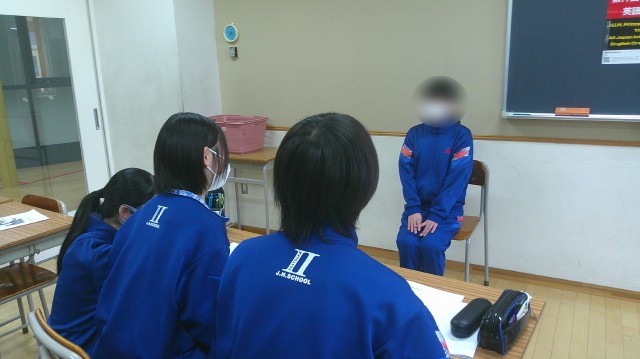 面接の取り組み方について説明を聞き、それをもとに班ごとに面接練習をしました。