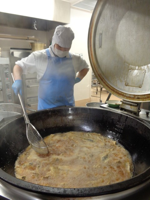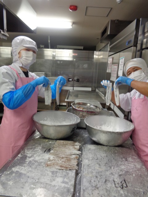 「さんまの蒲焼き」片栗粉をつけて油で揚げます。