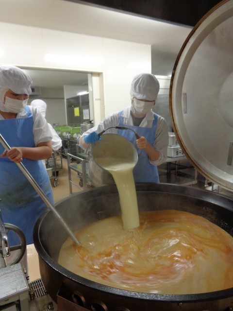 豆乳・白すりごま・白ねりごまがたっぷり入ります。豆乳は分離しやすいので、湯煎して温度を上げてから最後に入れます。