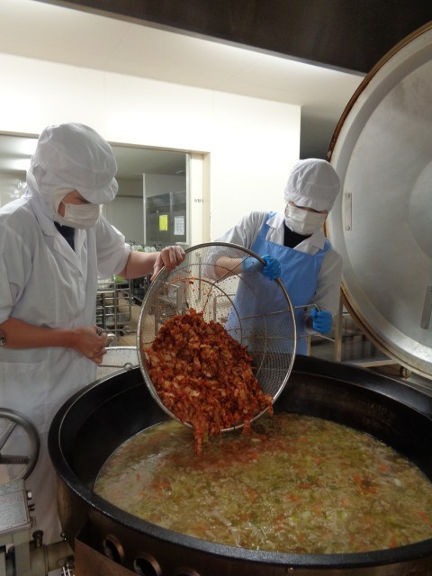 「魔王も黙る激辛クッパ」キムチスープをごはんにかけて仕上げます。激辛?ではなく、みんな食べることができるマイルドな味付けです(笑)
