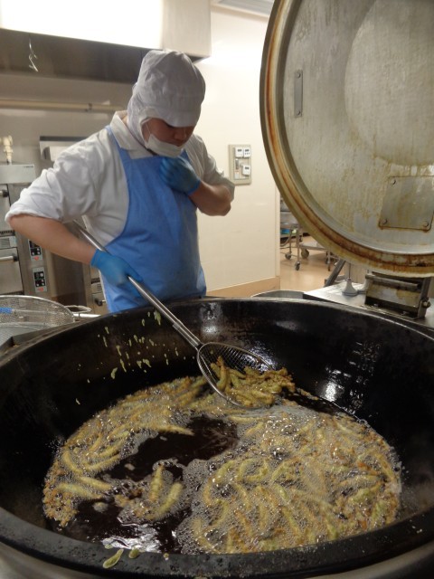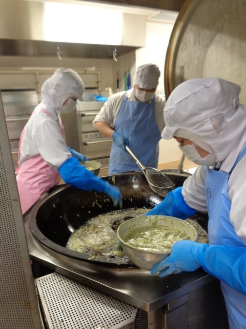 「海藻入りぷくぷく揚げ」海藻は青のりを使用しています。ぷくぷくの正体はニギスのフリッターです。