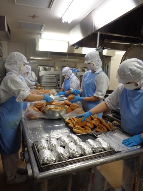 「プルコギバーガー」プルコギをパンにはさみ、アルミホイルで包んでオーブンで焼きます。