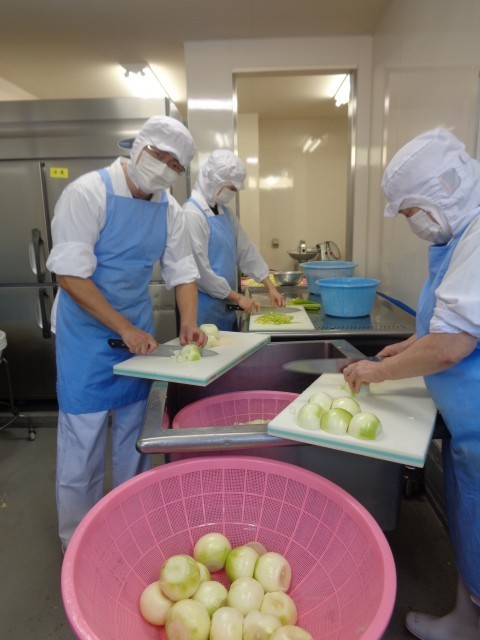 今日のメニューは、野菜をたくさん使用します。スライサー(機械)を使用せず、包丁でカットしています。