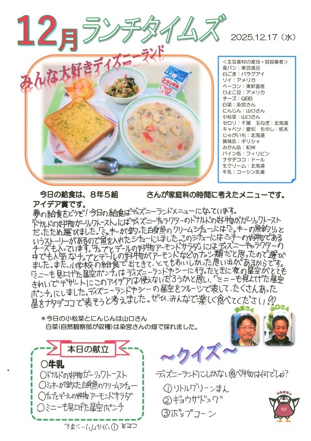 生徒作成献立【みんな大好きディズニーラン】