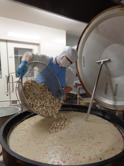 「ミッキーが釣った白身魚のクリームシチュー」白身魚はオーブンで焼き、最後にシチューに入れます。