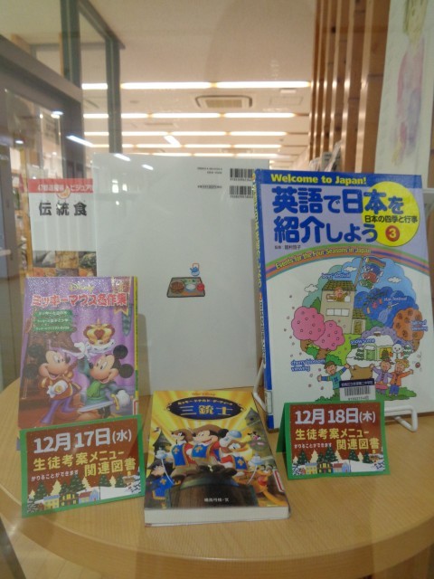 ブックメニューとして、関連する本を図書室に展示しています。