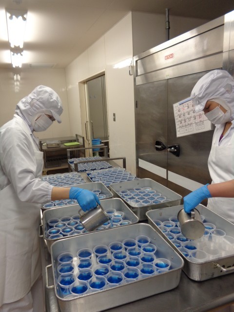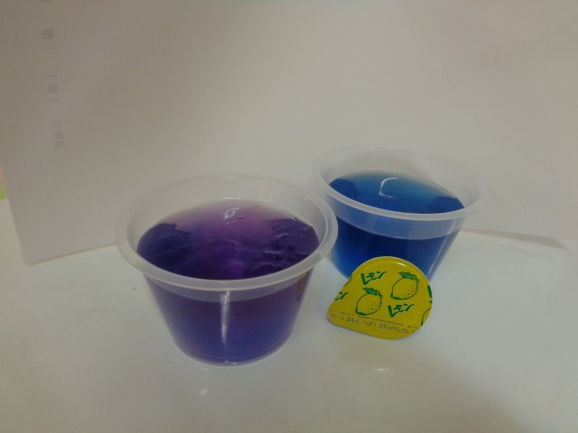 「パトローナスの魔法ゼリー」バタフライピーティを使って青いゼリーを作ります。レモン汁をかけると紫色に変わります!