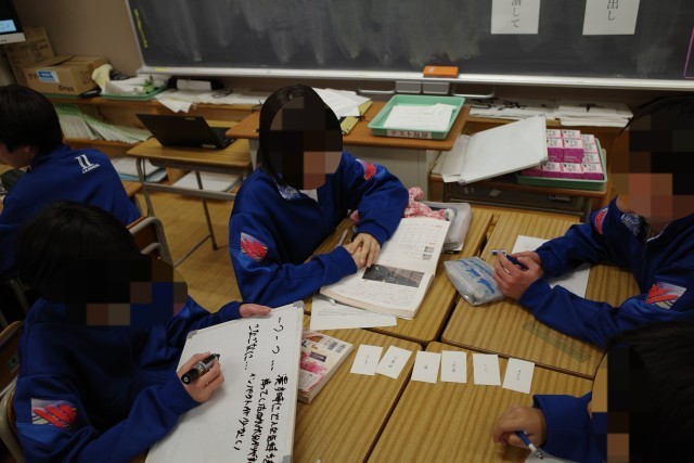 協働的な場面が多く設定され、友だちと協力し合いながら、学習を深めていく生徒たちの様子が見られました。