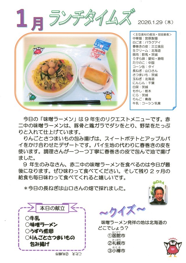 1月29日(木)給食